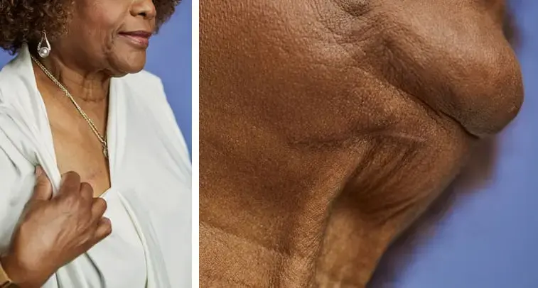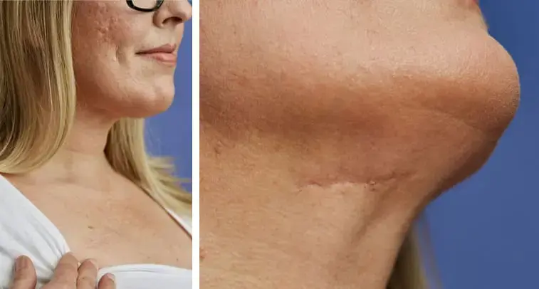 The visibility of the scars from your Inspire implant procedure will depend on your skin tone and individual healing process. Each patient will have one incision under the chin and one below the collarbone.